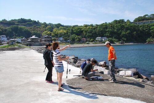 真鶴にて、人生初の釣りのチャレンジ。 強風の影響で釣船が出なかったので、磯釣りに挑戦することになりました。 指導役に、普段はボートでお世話になっている漁師さん。心強い。 竿の投げ方?等を練習してからチャレンジ。真剣です。 熱心な指導なんかも。 …